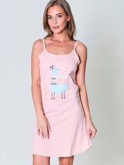 Трикотажная туника на бретельках, из однотонной ткани, с принтом впереди.