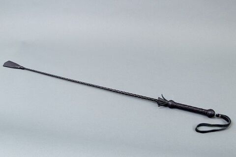 Стек состоит из гибкой основы, оплетённой натуральной кожей черного цвета,наконечника и удобной рукояти с петлей для надевания на руку (темляк).