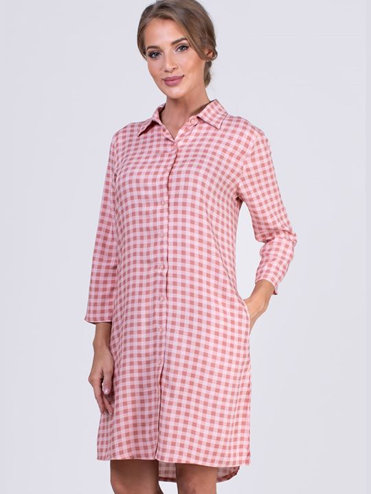Платье-рубашка с отложным воротником, на пуговицах.Ткань в клетку. Рукав длиной 7/8.