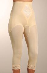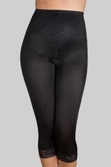 Корсетные штаны-капри средней степени коррекции. Особо скроенные уплотненные боковые швы позволяют уменьшить объем бедер на один-два размера. Невидимая вставка на животе утягивает его, создавая комфорт при носке. Нижний край изделия оторочен эластичным кружевом с силиконовой лентой. Длина – до середины голени. Ластовица - 100% хлопок.