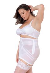 Корсетный пояс для чулок сильной коррекции со специальной вставкой на животе и особым кроем из круговых швов, обеспечивающих уникальную коррекцию бедер и талии. Для удобства надевания и использования имеется застежка-молния, которая изнутри дублируется крючками. Имеется 6 металлических застежек для чулок.