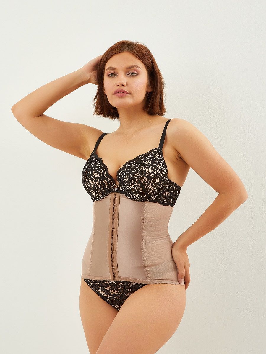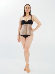 Корсетный пояс сильной степени коррекции выполнен из очень приятной дышащей ткани, отлично формирующей контуры тела. Сатиновая нерастягивающаяся гладкая ткань передней панели создает стройный живот. Особый крой и высокотехнологичное выполнение круговых швов позволяет уменьшить объем талии на 2 размера. Корсетные косточки настолько удобны, что позволяют не только корректировать фигуру, но и распределять нагрузку на мышцы спины, облегчая повседневную жизнь. Фронтальная застежка на 12 крючках очень практична и позволяет телу двигаться, не ограничивая себя.