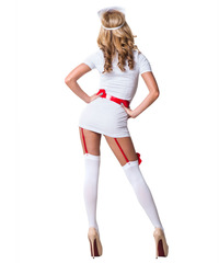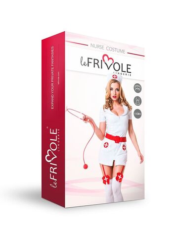 И всё же эта похотливая медсестричка – истинная врачевательница. Кокетливо закусывая губу, глядя из-под пышных ресниц и нежно поглаживая тело кончиками пальцев, она заставляет пациента забыть обо всех недугах! В комплекте: халатик с подвязками для чулок, головной убор, лаковый ремень.