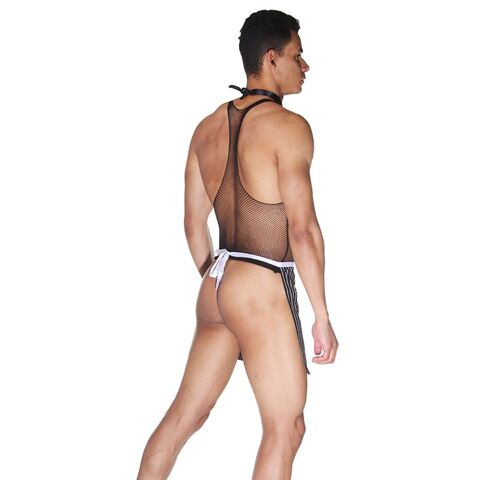 Игривый костюм официанта создан для тех, кому нравится разнообразие и эксперименты. Верх костюма сделан из мягкого эластичного материала в мелкую сеточку. Низ прикрывает только переднюю часть, оставляя ягодицы открытыми. В дополнение к образу в комплекте идёт белая бабочка. В комплекте: топ с фартуком, галстук-бабочка.