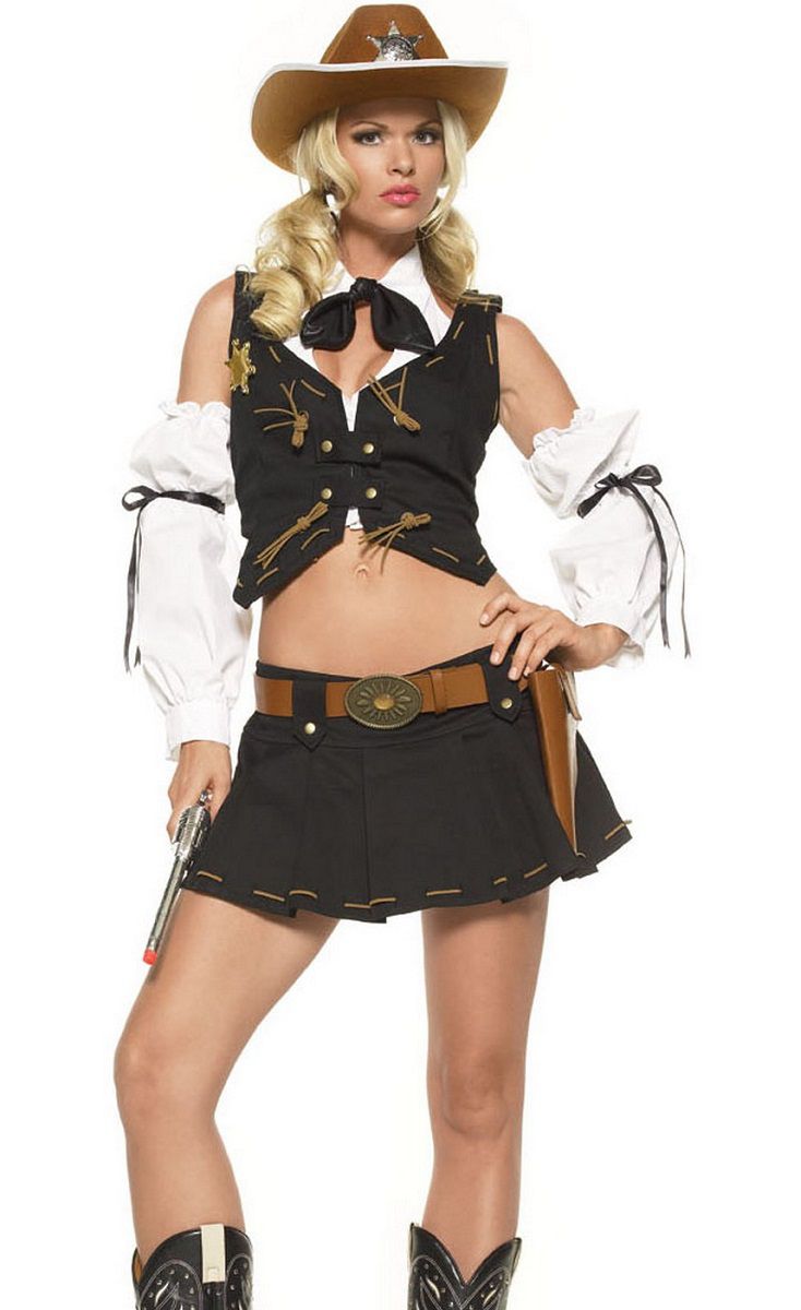 Элегантный костюм шерифа: жилет с воротником, плиссированная юбка и нарукавники. В комплекте: жилет, воротник, юбка, нарукавники.