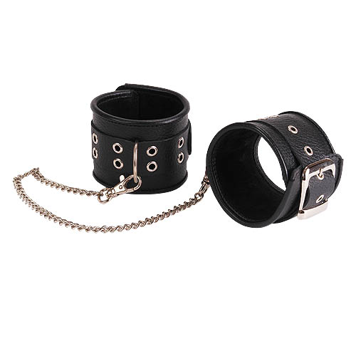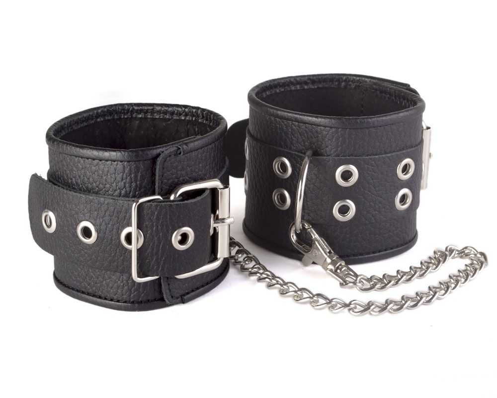 Кожаные черные оковы с широким ремешком, соединенные цепочкой