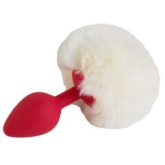 Красная анальная пробка размера S с белым хвоcтиком зайки