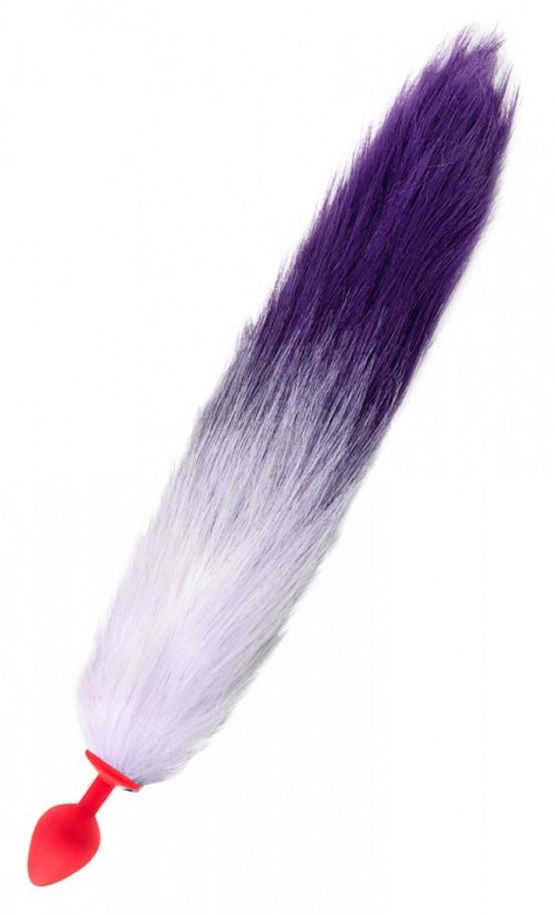 Красная анальная пробка с сиренево-фиолетовым хвостиком