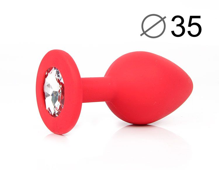 Красная конусовидная анальная пробка с прозрачным кристаллом - 8 см.