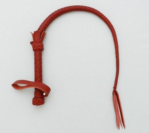 Однохвостая длинная плеть имеет стандартную жесткую ручку и плетеное тело красного цвета . Тело плети заканчивается узлом и хлопушкой из той же кожи. Применяется для точечного воздействия, протяжек, ударов накатом и других комбинаций ударов. Имеет сильное и жесткое воздействие. Используется после предварительного разогрева тела.