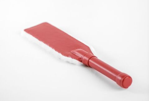 Двусторонняя шлепалка красивый и функциональный девайс. С одной стороны шлепалка выполнена из натуральной кожи красного цвета с другой стороны нежнейший мех. Ручка из натуральной кожи максимально комфортна в руке. Шлепалка при ударе звучит громко и эффектно. Ширина - 6,5 см.