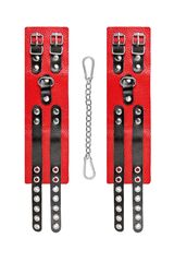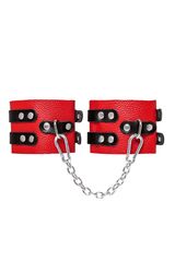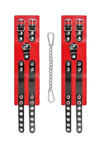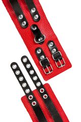 Мягкие оковы с двумя жёсткими ремешками от Pecado помогут обездвижить партнера во время сексуальных прелюдий или жестких БДСМ-играх. Оковы изготовлены полностью из красной, натуральной кожи. Ремешки выполнены из чёрной жёсткой кожи, украшены люверсами. Выделка материала произведена вручную. Ремешки и широкая манжета хорошо держат форму: не тянутся и не мнутся. Качественная металлическая фурнитура добавляет лоска изделию, а аромат натуральной кожи повышает градус возбуждения. Благодаря широкому запасу регулировок, можно подобрать необходимый обхват. Аксессуар удобно застегивать и легко расстегивать. При правильном использовании не оставляет следов на теле и не доставляет дискомфорта. Манжеты оков соединяется между собой помощью двух карабинов и съемной стальной цепочки. Подходит и для женских, и для мужских ног. Длина манжет - 25 см, ширина - 7 см.