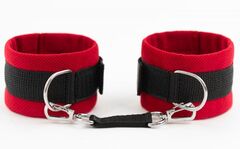 Нежный велюр и прочные стропы – изумительное сочетание строгости и утонченности. Аксессуар дополнен серебристой фурнитурой, что делает его еще более изысканным. Оковы с легкостью фиксируются на ногах. Приятны к телу и прочны в использовании. Станут отличным дополнением к вашей любовной игре! Ширина манжет - 5,5 см.