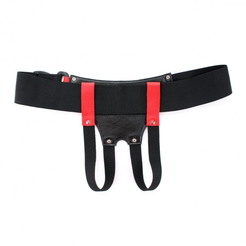 Трусики выполнены из натуральной кожи красного цвета с элементами из черных эластичных резинок, надежно фиксирующих изделие на теле. Трусики-джоки обеспечивают доступ к интимным зонам. Размер удобно регулируется, подойдет на 42-46. Максимально комфортный аксессуар разнообразит любую БДСМ игру. Ширина резинки на поясе - 5 см.