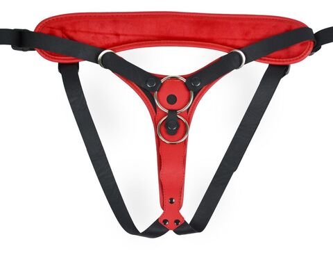 Можно зафиксировать кольцом любой фаллоимитатор на присоске (2 кольца в наборе комплекта с разными диаметрами). Для смены колец – необходимо расстегнуть кнопки ремней вокруг отверстия и поставить подходящее по размеру кольцо.