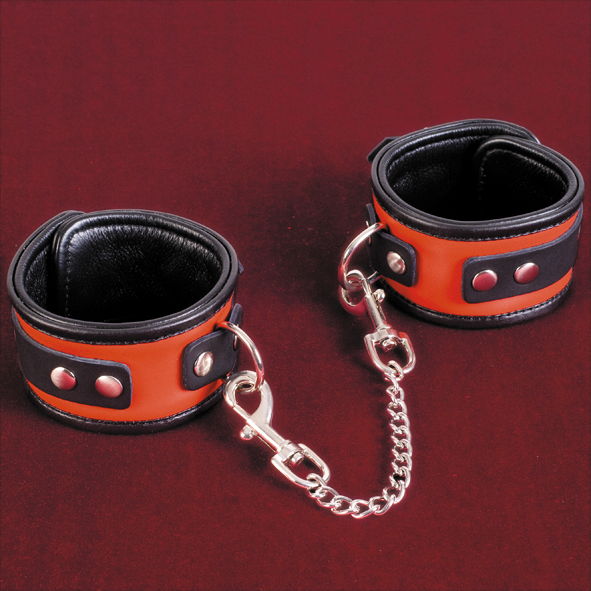Красно-чёрные кожаные оковы на ноги ToyFa