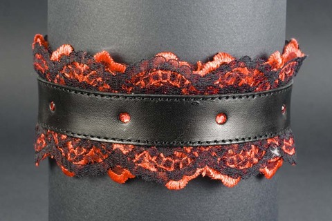 Красно-чёрный подшитый чокер Готика-15 . С 7 красными кристаллами. Застёжка-кнопка.