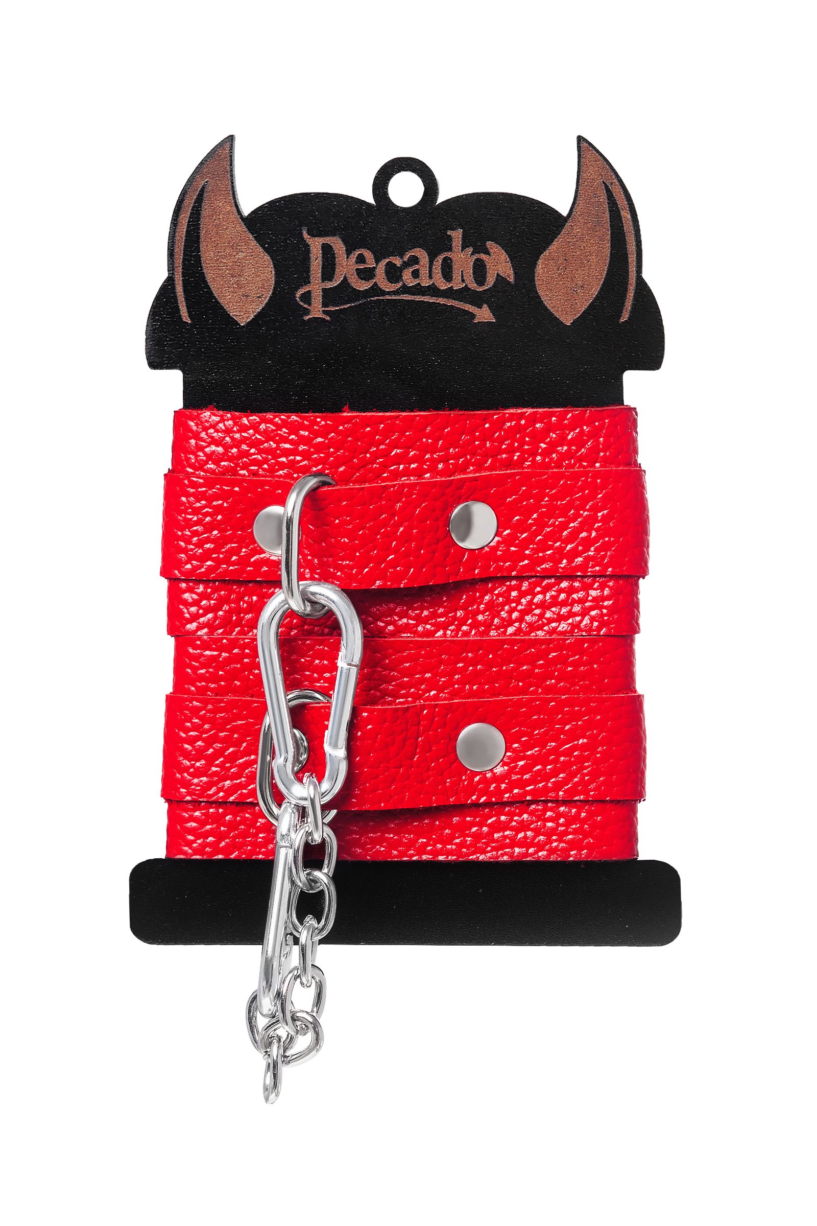 Ищите наручники для миниатюрной ручки? Тогда обратите внимание на эту модель от российского производителя Pecado. Они идеально созданы для обладательниц узкого запястья. Каждый элемент аксессуара изготовлен полностью вручную. Мягкий, красный материал нежно обхватывает руку и оставляет только приятные ощущения от контакта с телом. Аксессуар декорирован качественной фурнитурой, благодаря которой, при необходимости, его легко снять. Соединяются между собой с помощью короткой стальной цепочки и двух колец с карабинами. При правильном использовании не оставляют следов на теле. А особый аромат натуральной кожи придает пикантности сексуальному атрибуту. Длина манжет – 15 см, ширина – 4 см.