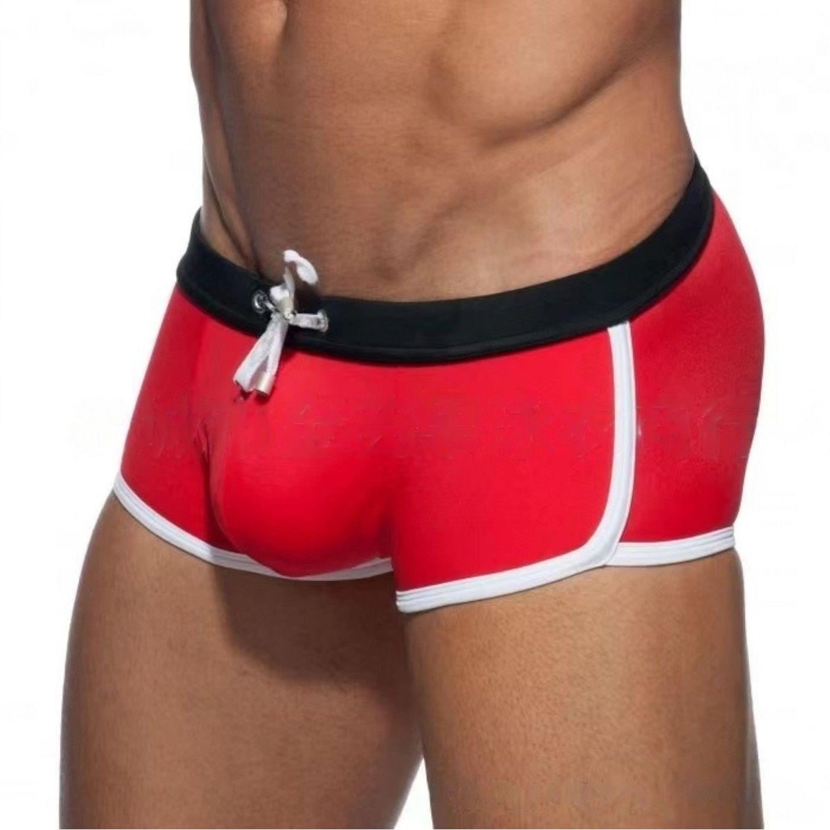 Красные мужские плавки-хипсы с контрастной отделкой