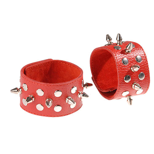 Изготовлены из натуральной кожи. При изготовлении использована никелированная фурнитура. Размер универсальный. Длина шипов - 1,2 см.