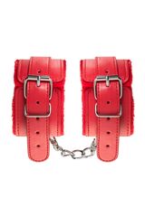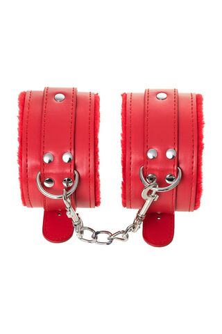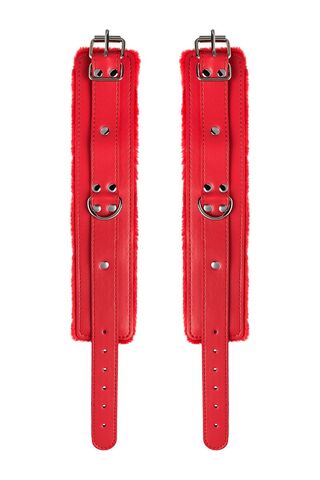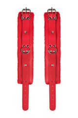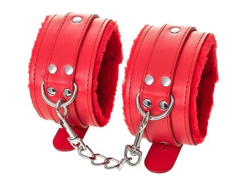 Оковы на ноги яркого красного цвета с металлической отделкой говорят вовсе не об агрессии. Эти произведения искусства говорят о страсти, которую можно проявить, но только с разрешения Доминанта. Подклад из искусственного меха делает ношение этих оков более комфортным, но расслабиться в них не получится – цепочка на карабинах сильно ограничивает свободу действий. Длина поножей позволяет использовать их практически на любой размер ног. Отрегулировать размер и силу обхвата легко с помощью ремешка и металлической пряжки. Оковы – классический предмет для игры в подчинение, обязательный для начинающих и опытных поклонников БДСМ. Дополните комплект аксессуарами - ошейником, кляпом, наручниками и продемонстрируйте что значит грубое обращение и полный контроль над свободой. Ширина - 5,5 см.