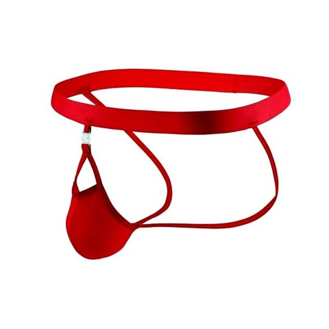 Красные сексуальные трусы-джоки на тонких ремешках.