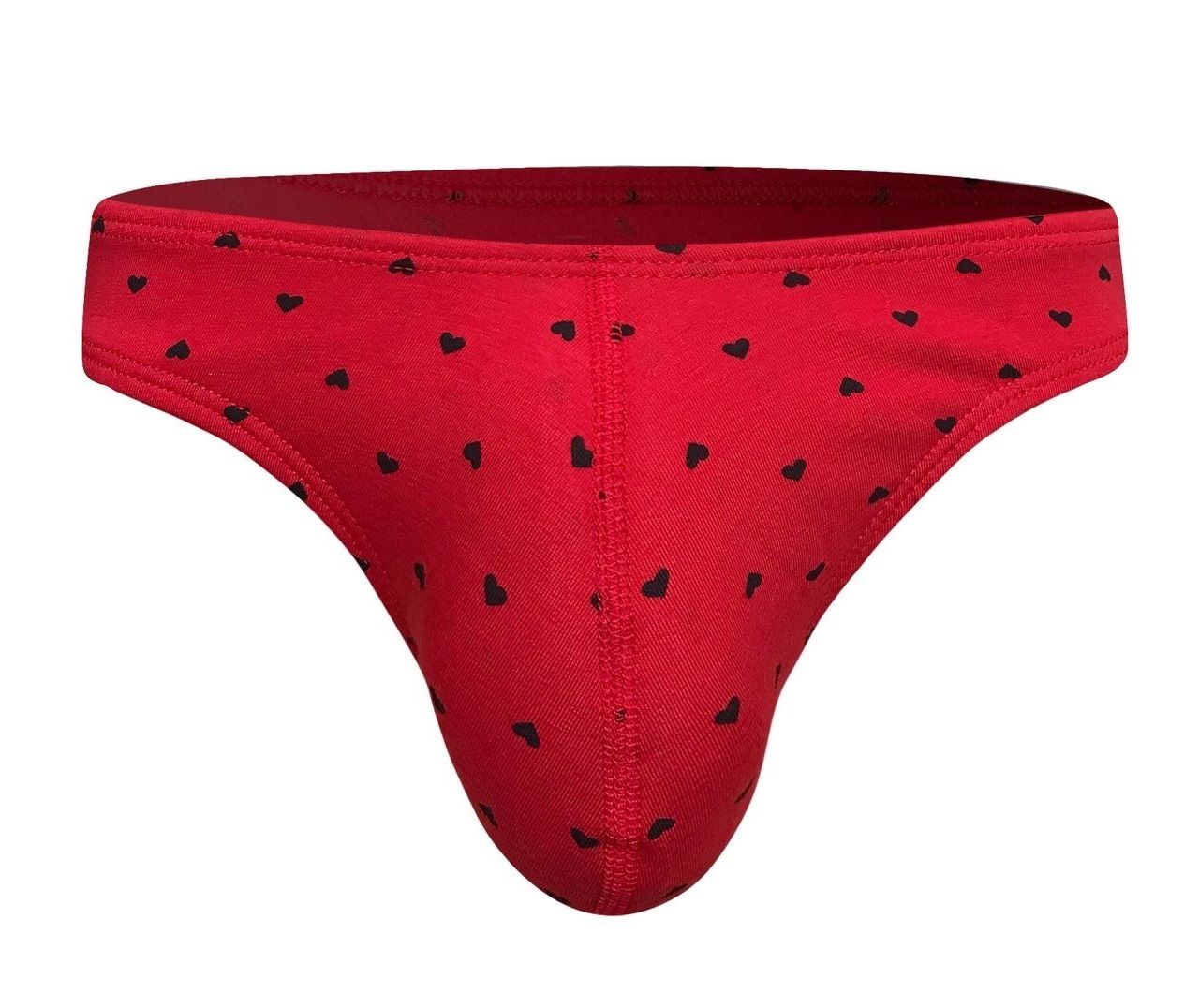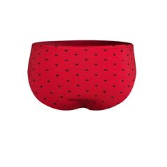 Красные трусы-слипы с принтом в виде сердечек.