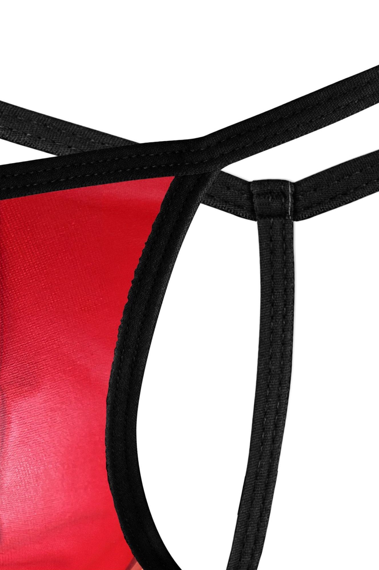 Красные трусы-стринги с черной окантовкой