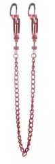 Зажимы на соски с цепочкой от Ouch! просты в использовании и предназначены как для Него, так и для Нее. Зажимы и цепочка выполнены из нержавеющей стали и алюминия. Продукт не содержит никель. Они могут стать вашим пикантным секретом и обеспечить постоянную стимуляцию во время занятий любовью. Длина цепочки - 33 см.