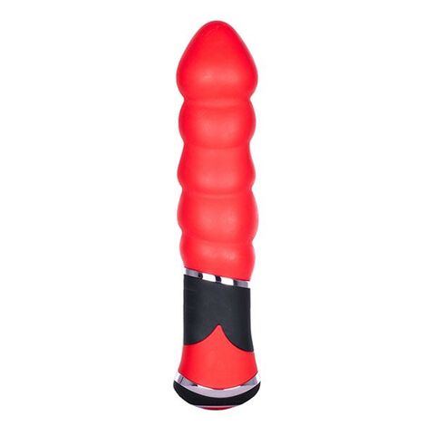 Красный анальный вибратор BOOTYFUL RIBBED VIBE. Выполнен из силикона. Рабочая длина - 11 см.