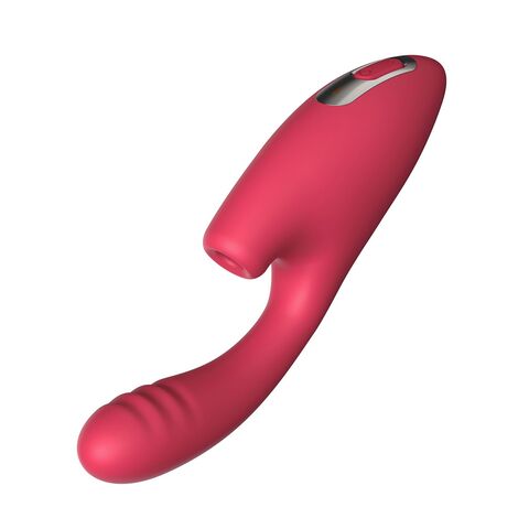 Красный двойной стимулятор Cardinal с вибрацией и вакуумом - 20,2 см.