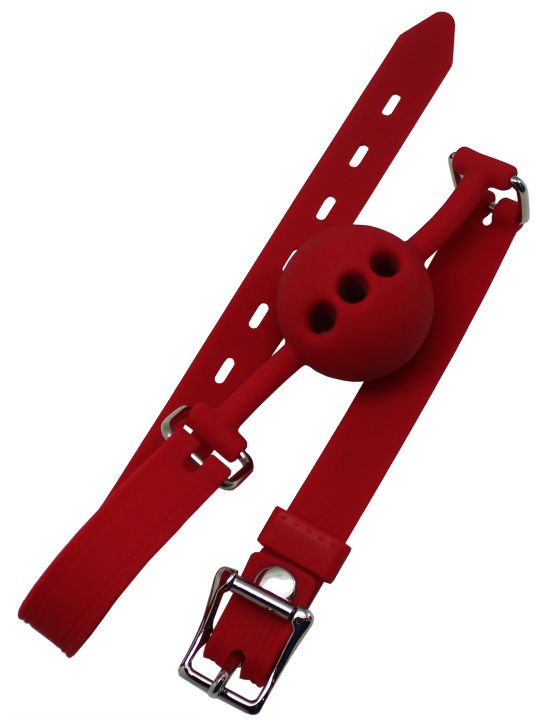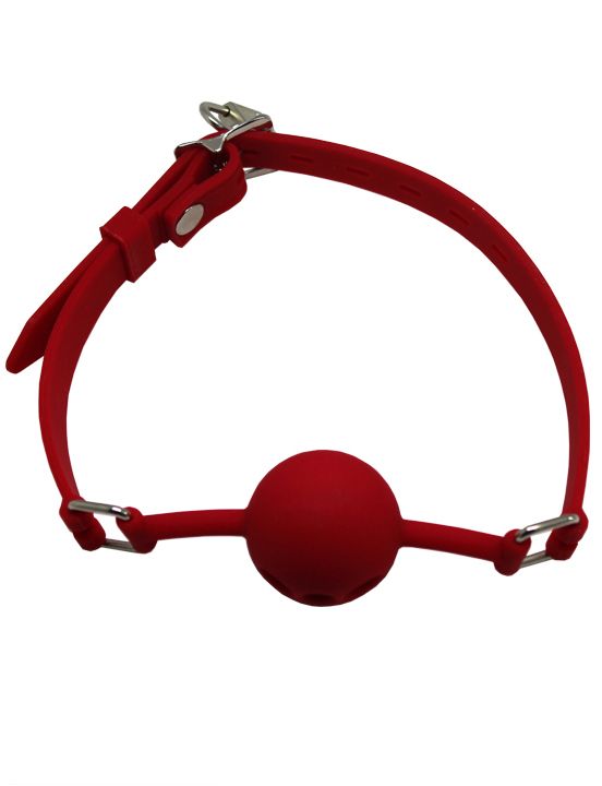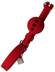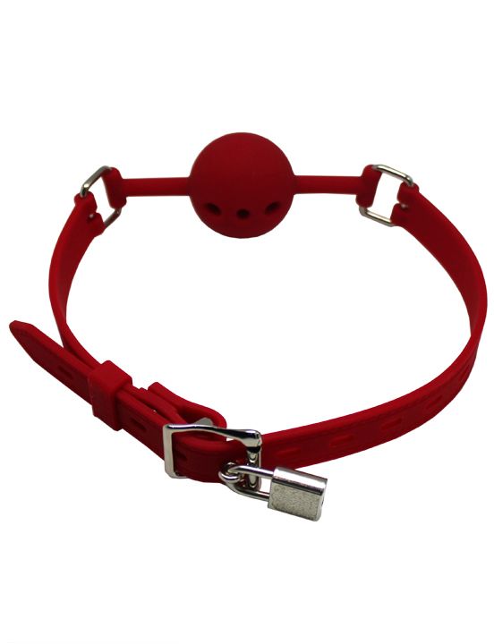 Красный дышащий силиконовый кляп-шарик с фиксацией и замочком