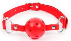 Красный кляп-шарик на регулируемом ремешке с кольцами