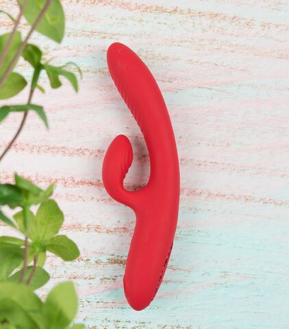 Красный тройной вибратор-кролик Ingrid с вакуумной стимуляцией и нагревом - 22,5 см.