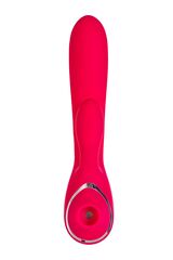 Красный вибратор c клиторальной и вакуумной стимуляциями Doobl - 20 см.