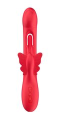 Красный вибратор-кролик с функцией фингеринга - 25,5 см.