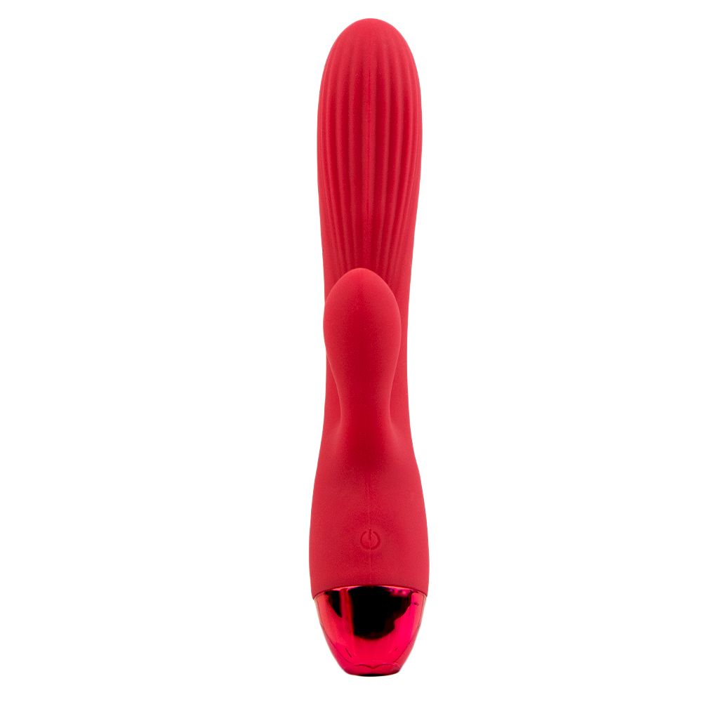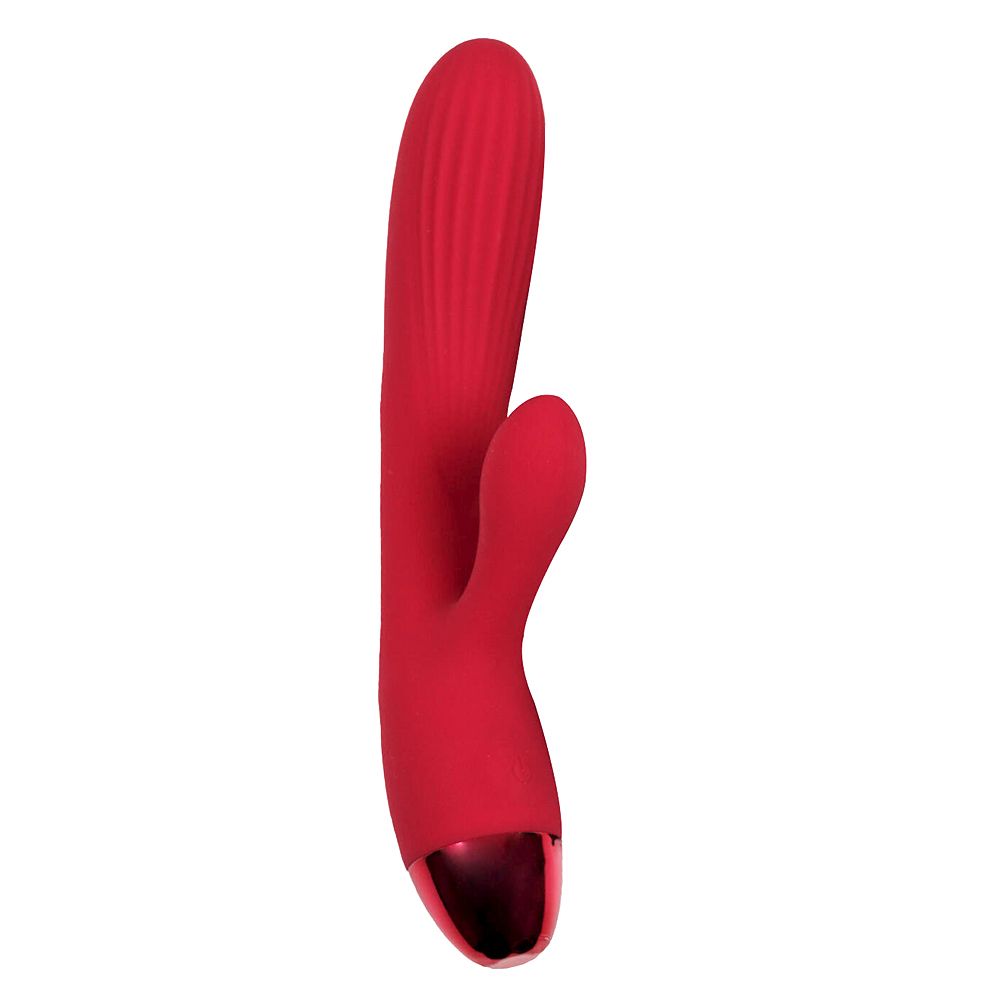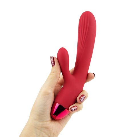 Красный вибратор-кролик с пульсацией и нагревом Irene - 21 см.