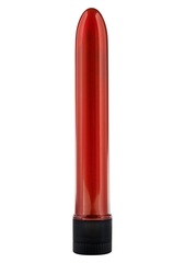Пластиковый вибратор,ярко красного цвета, с виброрегулятором в основании.