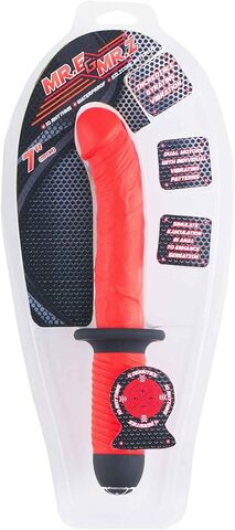 Красный вибратор из силикона - реалистичный фаллос с изогнутой головкой имеет 2 мотора, которые имеют 10 различных режимов работы и 4 скорости интенсивности. Один мотор в головке массажера, другой в основании. Рабочая длина - 17 см.
