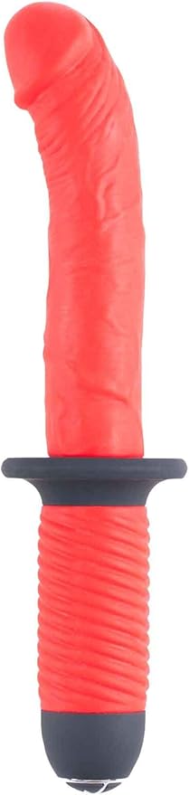 Красный вибратор с двумя моторами и рукоятью