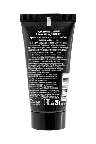 Крем для женщин Sextaz-W с возбуждающим эффектом наносится массирующими движениями на половые органы женщины (половые губы, клитор) перед контактом. Быстро впитывается (через 5 минут после нанесения), усиливая приток крови к эрогенным зонам. Смягчает и разогревает кожу и слизистые интимных зон. Вызывает сильное сексуальное желание, которое длится дольше обычного. Использование крема «Sextaz-W» позволяет обогатить интимную близость яркими ощущениями, эмоциями и чувствами. Особый состав средства способствует быстрому получению оргазма.