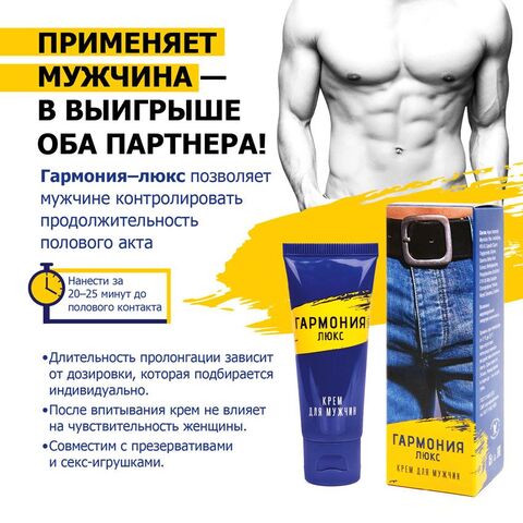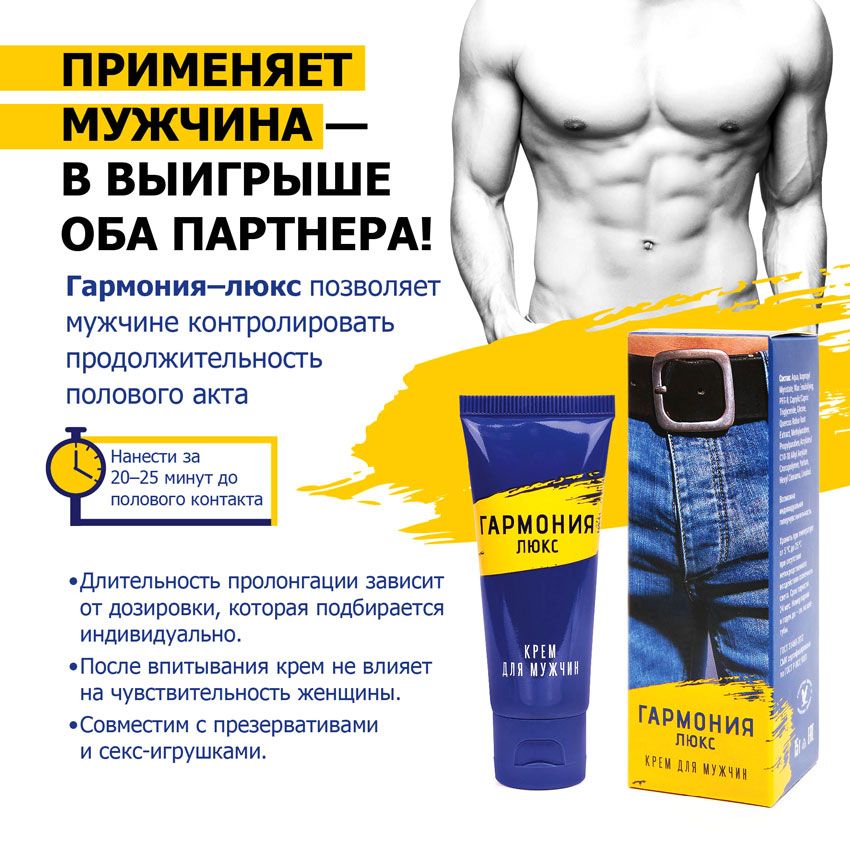 Долгий продолжительный секс – прерогатива владельца крема «Гармония Люкс». Благодаря замедленному действию этот пролонгатор может быть нанесён заранее, за 25-30 минут до интимной близости на половой член без эрекции. Это позволит мужчине оставить в тайне от женщины использование дополнительных средств для продления близости. Ведь совсем не обязательно посвящать ее во все секреты. И в глазах партнерши обладатель крема всегда будет чутким и умелым любовником. Наряду с хорошим пролонгирующим эффектом Гармония Люкс» обладает питательным и регенерирующим действием, что особенно важно при интенсивной половой жизни.