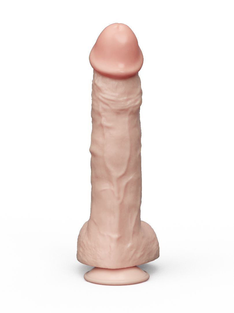 Крупный и очень соблазнительный фаллоимитатор с чувственной головкой, прорисованной венозной сеточкой и аккуратной мошонкой выглядит невероятно реалистично!