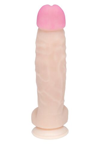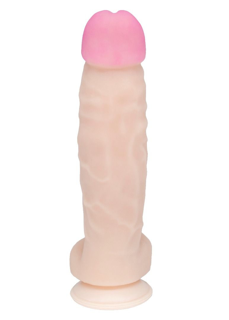 При помощи присоски, расположенной в основании фаллоимитатора, его можно закрепить на любой поверхности. Рабочая длина - 19 см.