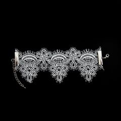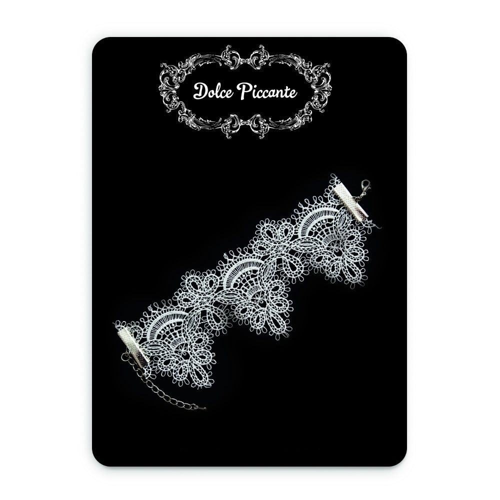 Изящный, почти невесомый кружевной браслет - нежный, очень женственный аксессуар, которым можно дополнить эротический наряд или даже платье невесты. Коллекция Dolce Piccante. Французское кружево, родированный металл серебряного цвета, ручная работа, лимитированный тираж. Восхитительная коллекция для ночей красивой любви.