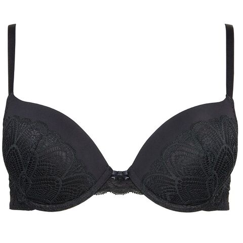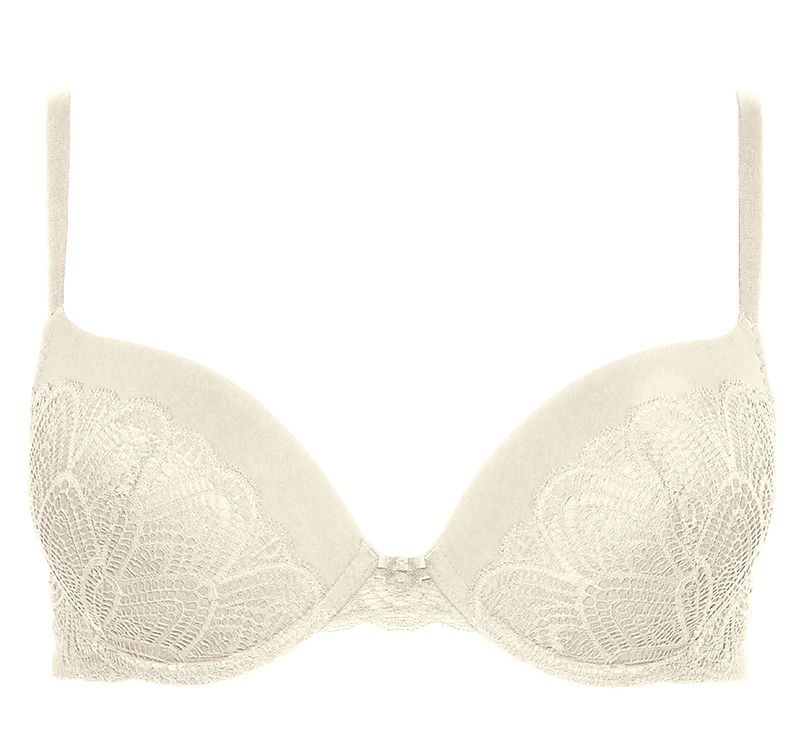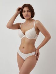 Бюстгальтер формованный на косточках, поднимает, увеличивает и центрирует грудь, гладкий с красивым сексуальным кружевом, украшен бантиком и символом РР.