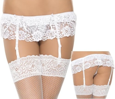 Кружевной пояс для чулок с цветочным орнаментом и трусиками-стринг в комплекте