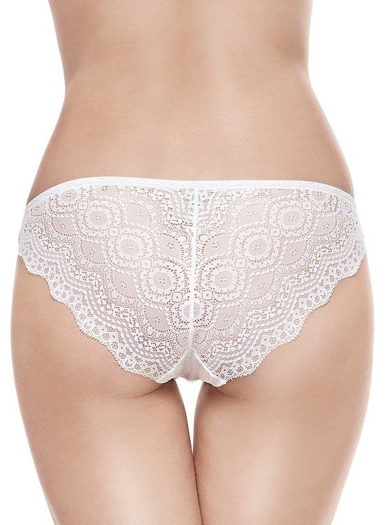 Трусики-слипы из кружева с геометрическим рисунком со стилизованными цветочными мотивами. Отсутствует эластичная кайма-резинка по бедру. Декорированы фирменным бирюзовым бантиком Infiore.