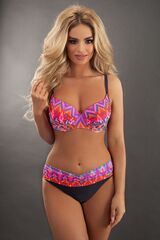 Купальник Joan с плотной чашкой (вкладыш push-up идет в комплекте) на косточках, с боковой поддержкой. На спине нерегулируемая пластиковая застежка, бретели регулируются по длине. Плавки с высокой талией. В комплекте: лиф, трусики.