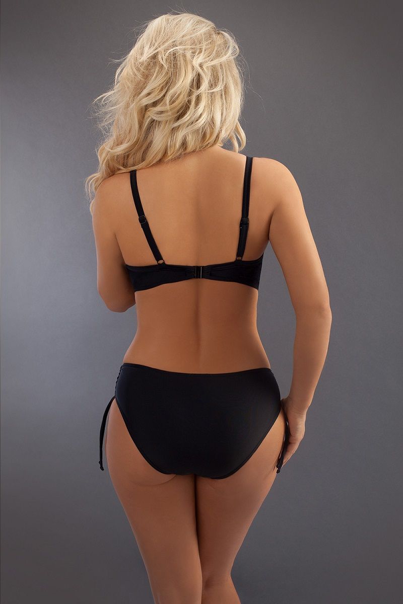 Купальник Sofia с чашкой push-up на косточках, с боковой поддержкой. Бретели регулируются по длине, пластиковая застежка на спине не регулируется. Плавки с высокой талией. В комплекте: лиф, трусики.